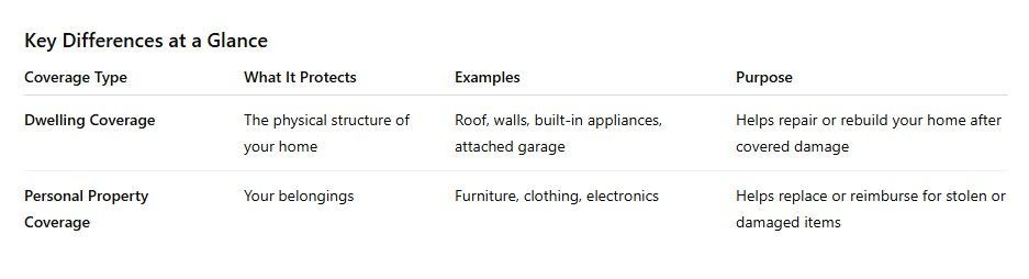When reviewing your home insurance policy, you’ll often see two major coverage components: dwelling coverage and personal property coverage. While both are designed to protect your home and belongings, they each serve different purposes. Understanding the distinction helps ensure you’re fully protected in the event of damage, theft, or disaster.